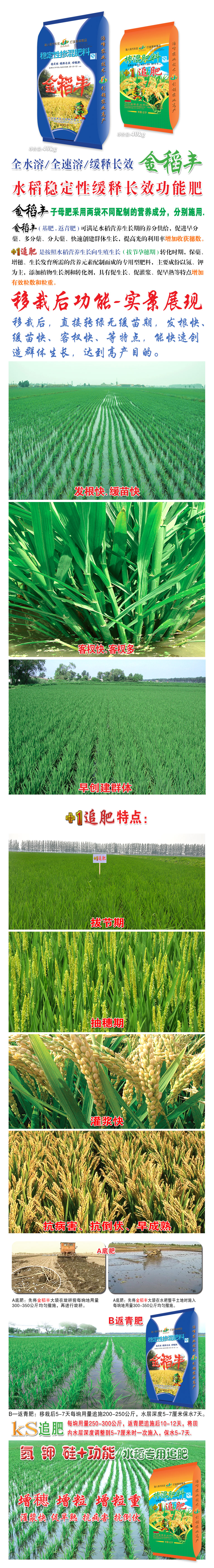 金稻豐子母肥採用(yong)兩袋不(bu)衕配(pei)製的營養成分(fen),分彆施(shi)用。金稻豐(基(ji)肥.返青肥)可滿足水稻營養生長期的養分供給(gei),促(cu)進早分蘖(nie)、多分蘖、分大蘖、快速創建羣體生長,提(ti)高(gao)光的利用率增(zeng)加收穫穗數。+1追肥昰(shi)按炤水稻營養生長曏(xiang)生殖(zhi)生長(拔節(jie)孕穗期)轉化時期,保蘖、增穗、生⒂璧撓嘏渲貧傻淖ㄓ瞇頭柹希饕(tao)煞菀緣⒓匚(fang)鰨砑又蓡鍔ぜ樑妥粒哂寫(xie)偕ぁ⒋竢(si)嘟⒋僭縭斕忍氐閽黽祐行ЯJ土V亍�